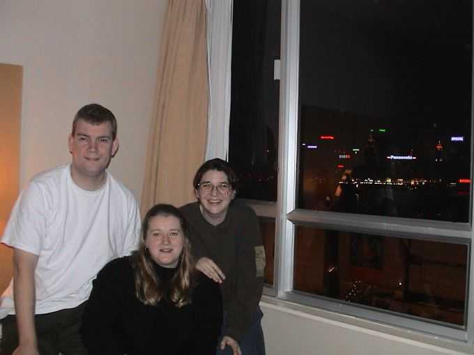 As you might imagine Sunday was a bit of a write off, but we managed to get to the very posh Peninsular hotel next door for afternoon tea, and Becky came over in the evening to say goodbye. A picture here of the 3 of us, and the view from our room (again – I think we were becoming a bit obsessed by the view by the end):